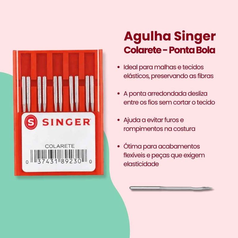 Agulhas e AlfinetesAcessórios de CosturaAgulhasSingerAgulha de MáquinaAgulha Singer para Colarete 7380/14 Blister com 10un