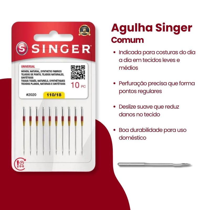 Agulha Singer Comum 2020/18 Blister com 10un