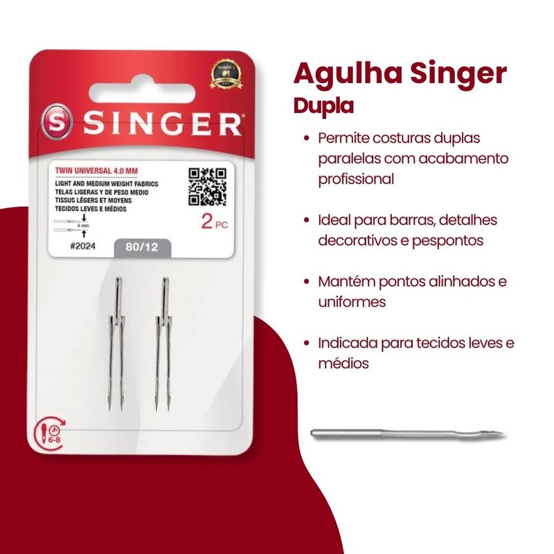 Agulhas e AlfinetesAcessórios de CosturaAgulhasSingerAgulha de MáquinaAgulha Dupla Singer para Maquina 2024/14 Blister com 2un