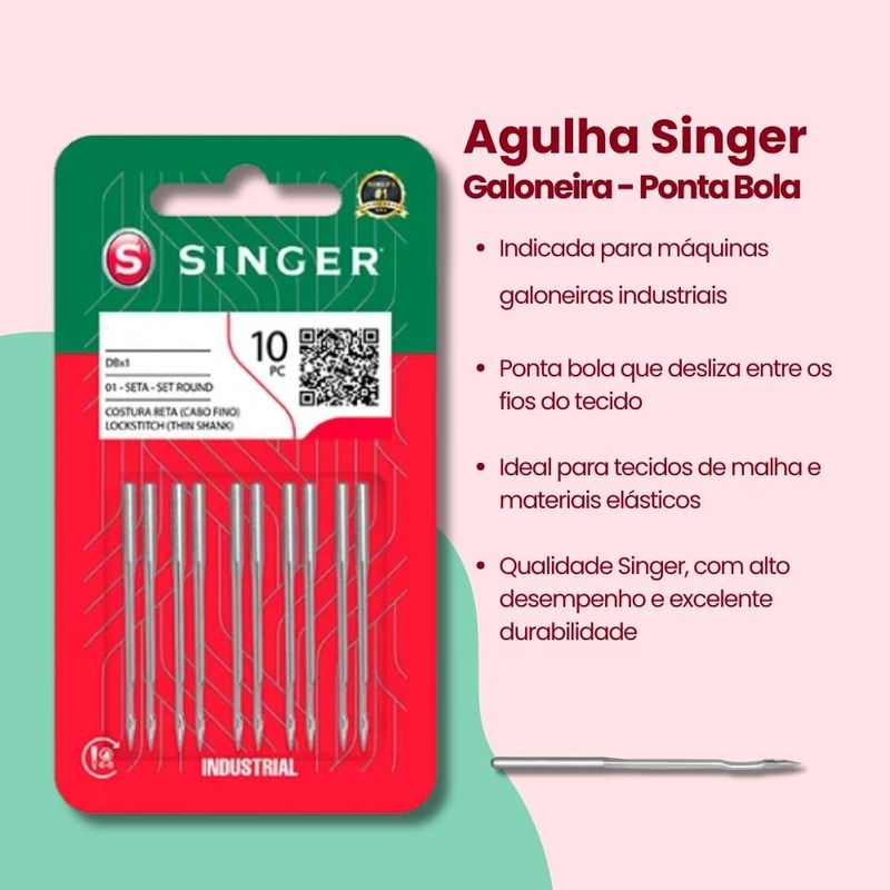 Agulhas e AlfinetesAcessórios de CosturaAgulhasSingerAgulha de MáquinaAgulha Galoneira Singer 3651/12 Blister com 10un