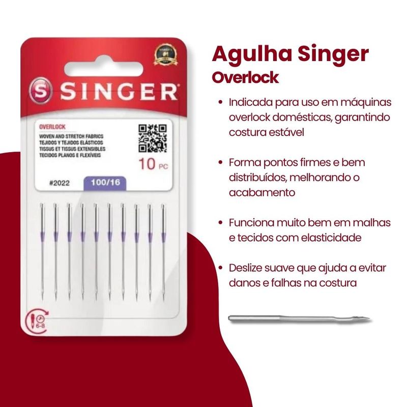 Agulhas e AlfinetesAgulhasAgulha de MáquinaAgulha Singer para Overlock 2022/16 Blister com 10un