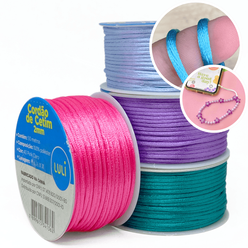 Versátil e fácil de manusear, é ideal para bijuterias, laços, embalagens, artesanato, customizações e muito mais. Disponível em diversas cores vibrantes, o cordão de cetim é perfeito para agregar charme e requinte às suas criações!